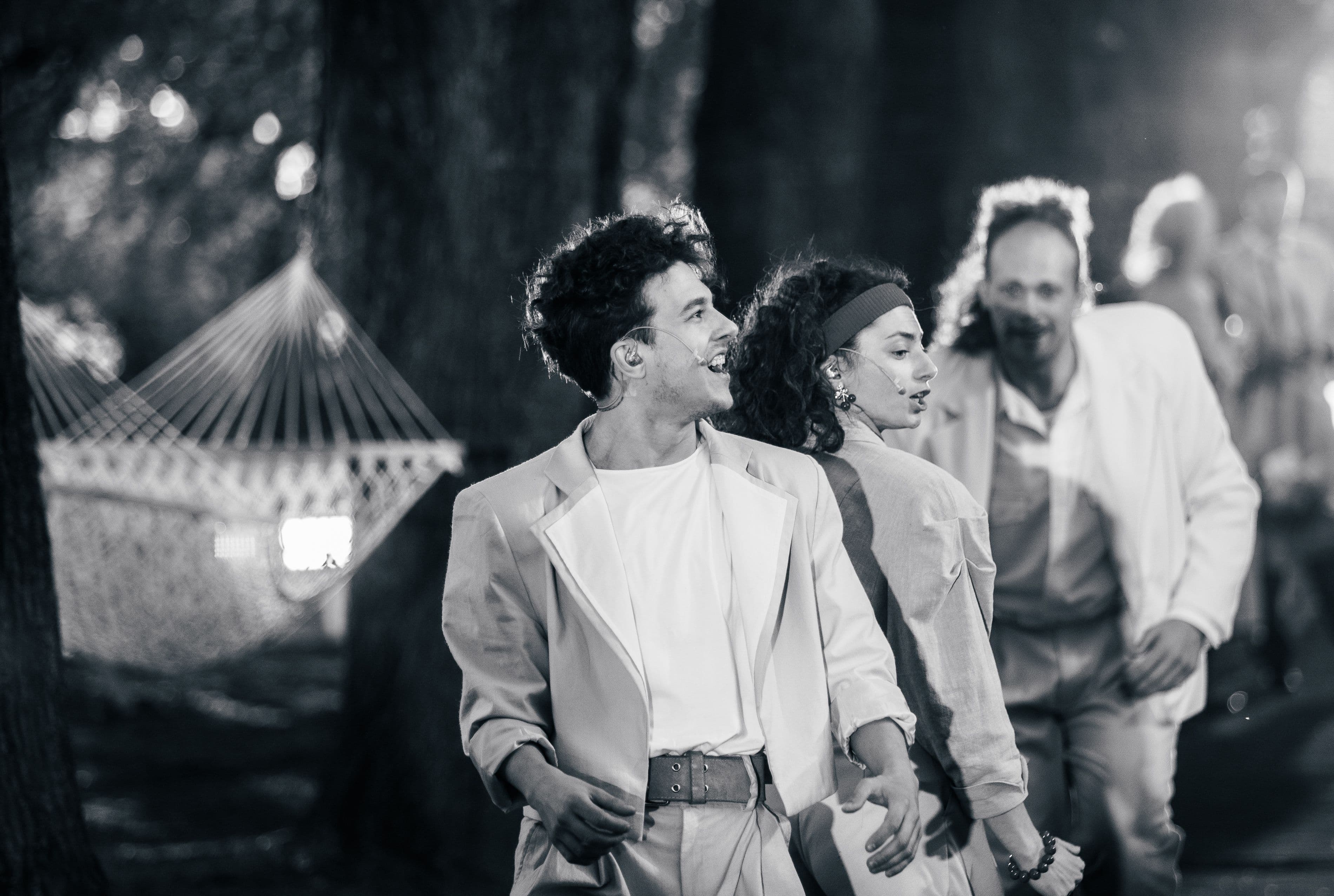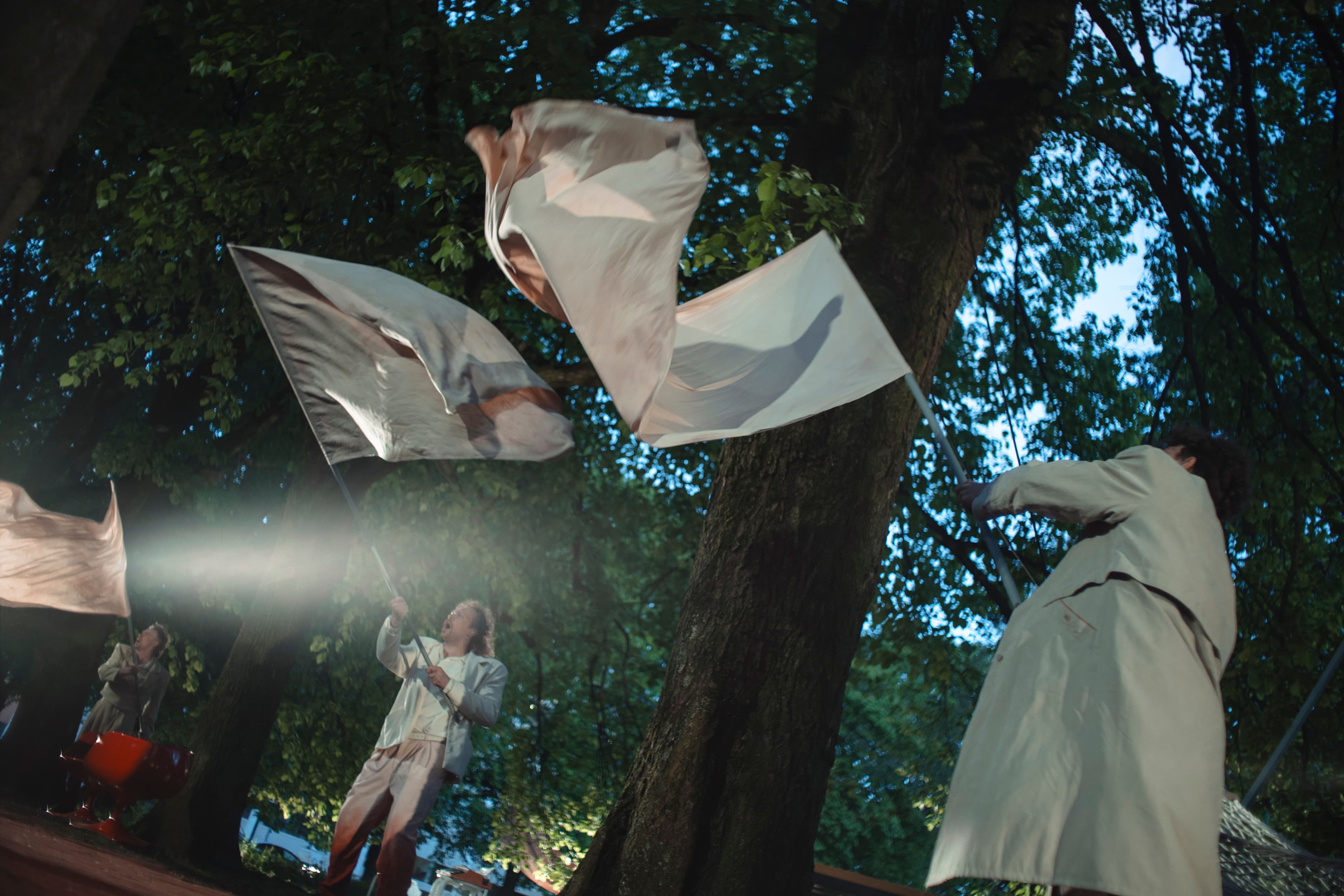 A site-specific musical performance in public urban space, staged on a simultaneous stage. The same performance is played three times; during each act, the audience changes seating on the grandstands to experience the piece from different auditory perspectives via three-channel wireless headphones. The performance remains fully visible at all times and is not separated from the surrounding city. Although performed in Estonian, the work speaks primarily through structure, music and spatial experience — offering an encounter that does not rely on language alone.
