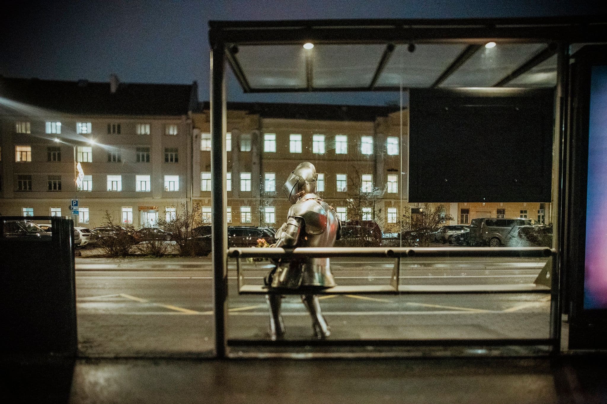 No. The hero has become a consumer, the sword a smartphone, and the angel’s proclamation a notification. The hero no longer brings light into a darkening world, but tries — in the music of nightlights — to remember what it feels like to be… oneself.