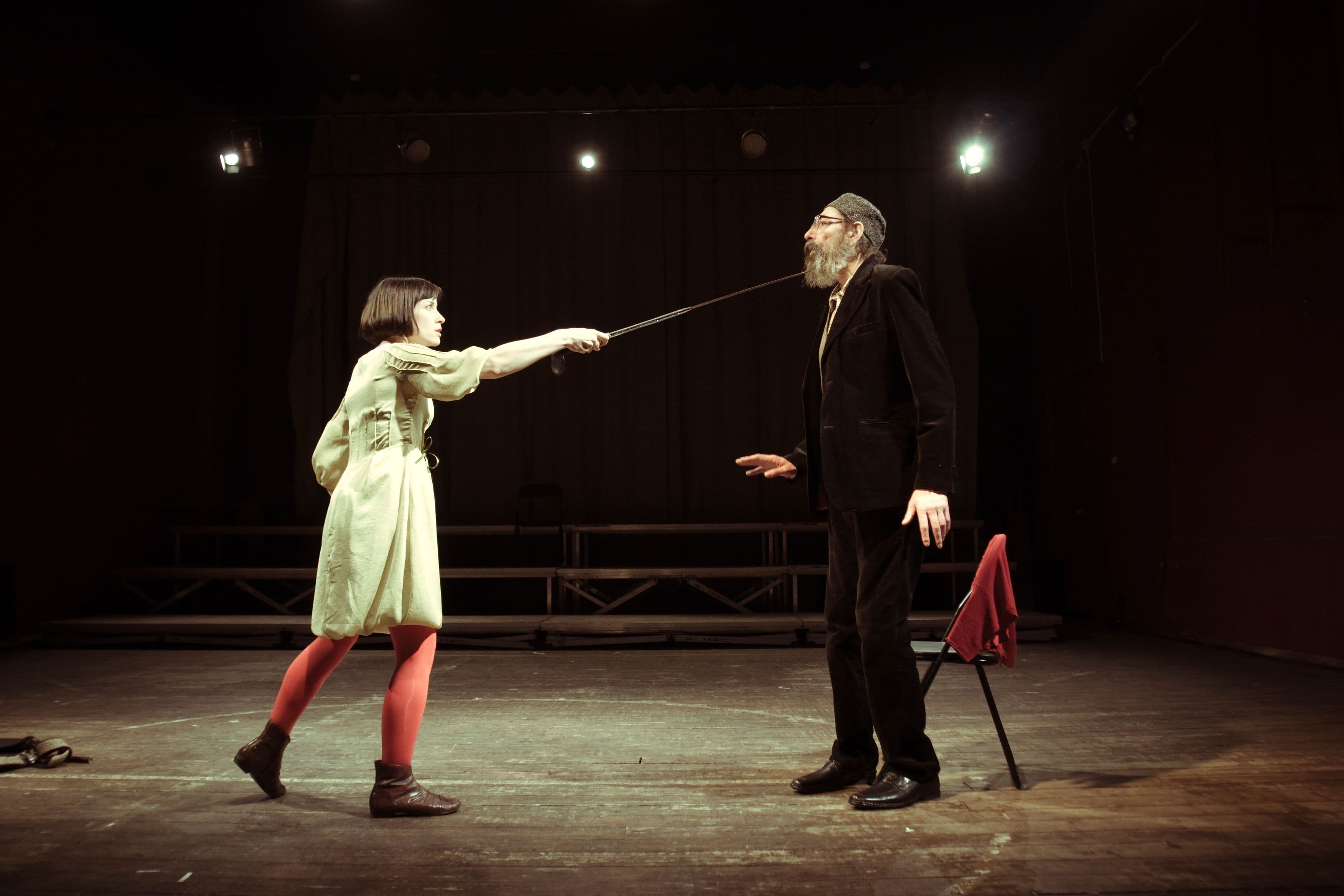 Kaks näitlejat. Üks juba vanem, mees, teine noor ja naine. Neil on kahepeale üks lugu. See lugu on nii selge, nad teavad, mis lugu see on, kuidas ja miks seda jutustada; milline peaks olema nende etenduse lava, muusika, valgus, kostüümid, publik.