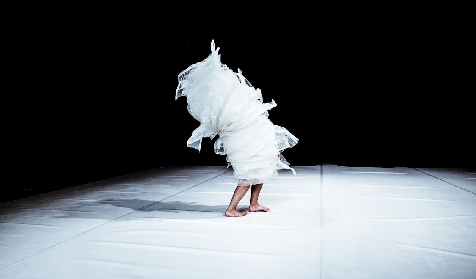 Avastseenis näeme lumivalges pruutkleidis (puhas meel) tegelast lava põrandal vaglana roomamas (pure mind), mis toob vägisi meelde David Lynchi filmide õhustiku. Dialektiline pingekolle väljendub värvisümbolismis – puhta meele valged toonid alguses ja lõpus (pruutkleidid, aluspesu, lumeväljad, kasetüved) asuvad dialektilisse võitlusse intensiivsetes värvikombinatsioonides kilgendava meelelahutusmaailmaga (moedemm, Amanda Lear). Kergemeelne moedemonstratsioon muutub aga lõpuks maniakaalseks, edevusest ja konkurentsist piitsutatud amokiks täieliku enesehävituse poole. Tuleb nagu tuttav ette?