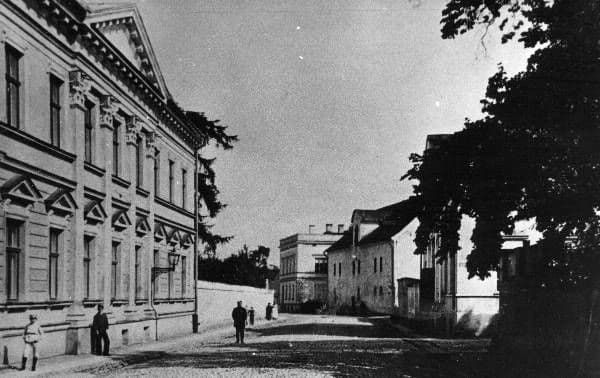 Keskajal asusid teatrimaja kohal linnamüüri ääres, otse Vene värava kõrval Püha Vaimu kirik ja hospidal.